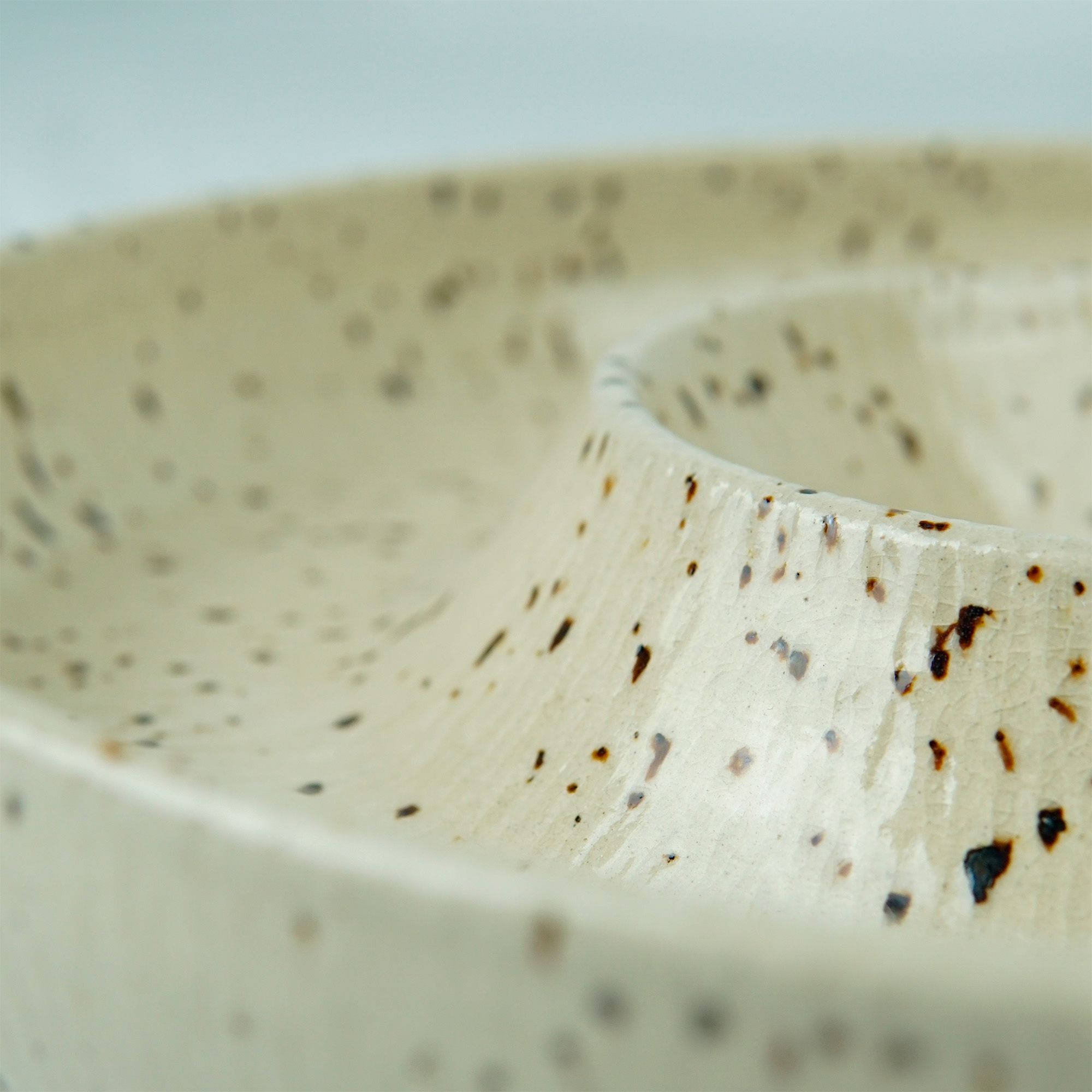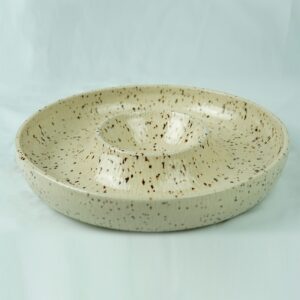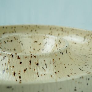 Feito em argila com pintinhas que podem variar em quantidade e tamanho.